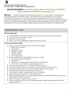 TX EMTF Job Action Sheet: Mobile Medical Unit Group Supervisor File Type: pdf File Size: 195 KB Categories: Job Action Sheet Justine Skyler2026-03-30T16:02:18-05:00